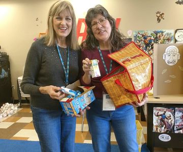 Jolyn Avants & Peggy Casey passing out treats.