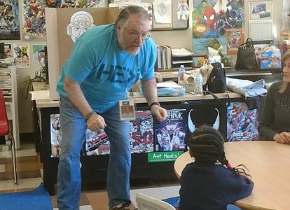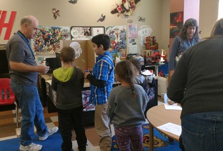 Brian Bennawy explains the giants game for the kids in the shelter.